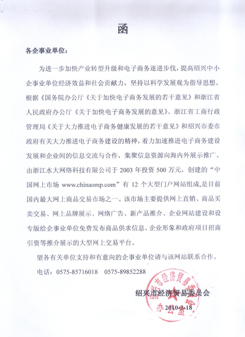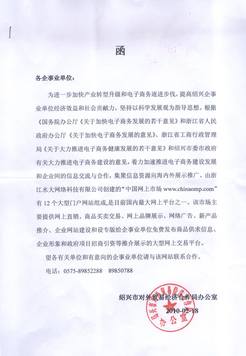 單位全稱:紹興市對(duì)外貿(mào)易經(jīng)濟(jì)合作局